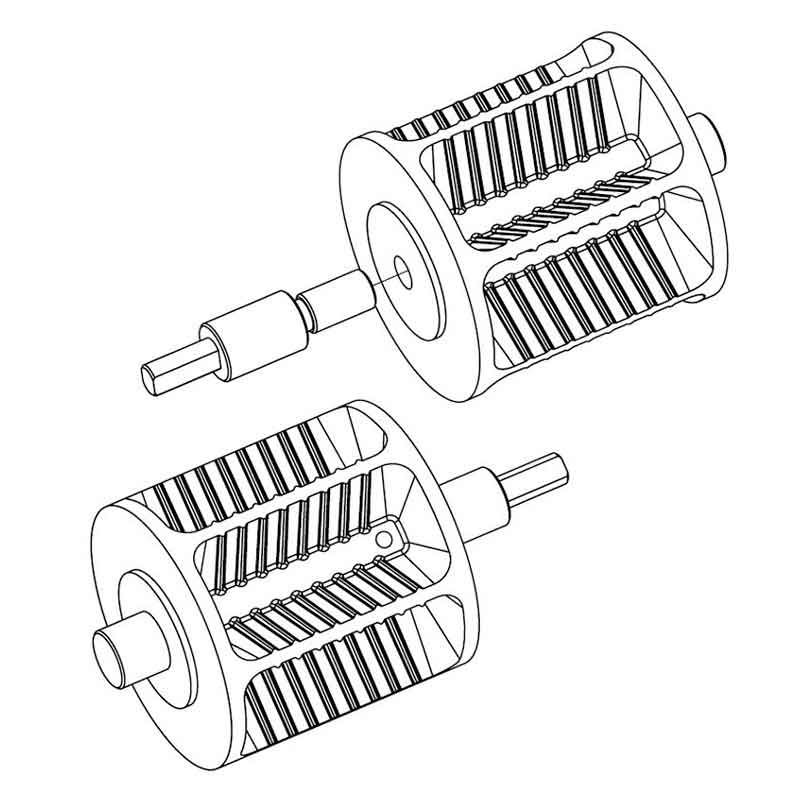 Cargador rotor-estrella para carga de pellet, el sinfín cilíndrico dispone de 6 estrías moleteadas, el moleteado está diseñado para cortar cualquier viruta de pellet y evitar bloqueos.
