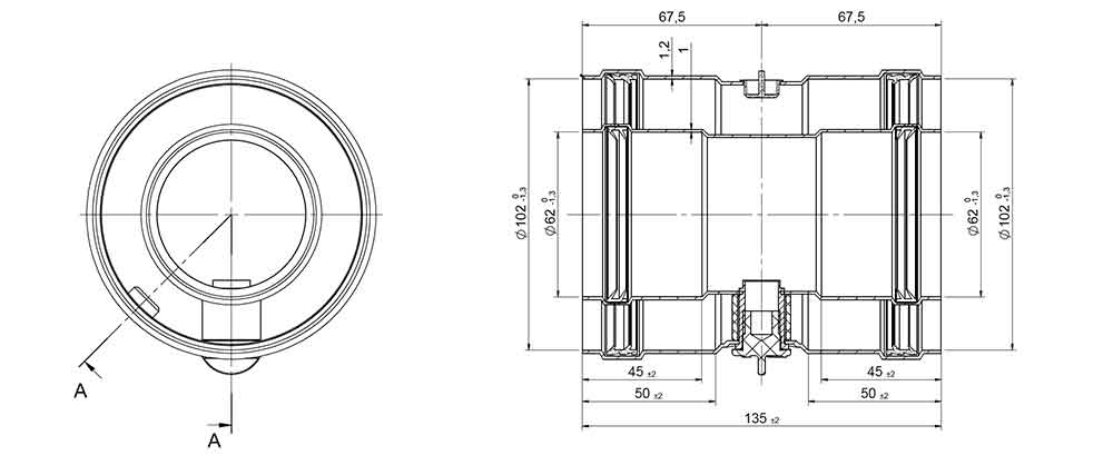 Disponible en Diámetros 60/100 mm concéntrico coaxial, con juntas y abrazadera.