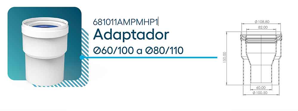 Además también incorporamos un adaptador de Ø60/100 a Ø80/110 si ya tenías un aparato de esta marca y quieres aprovechar la instalación.