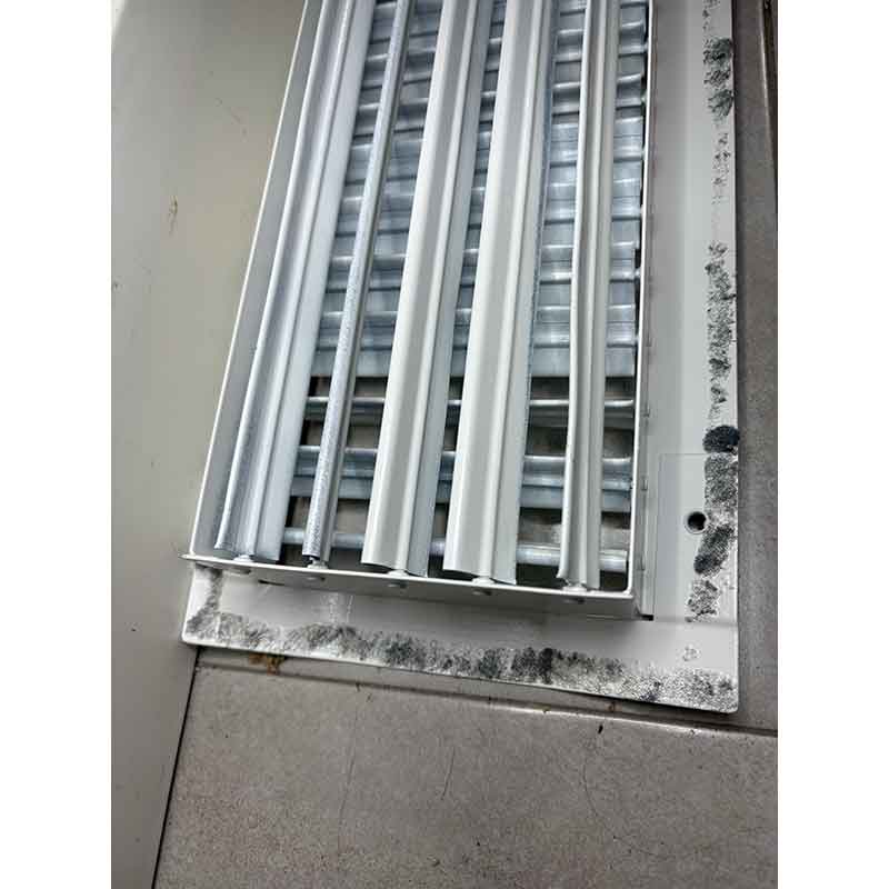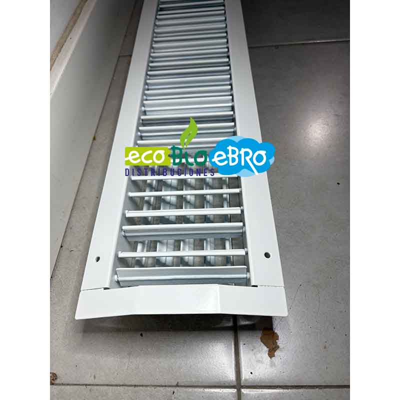 Dimensiones: 625 mm de longitud x 125 mm de altura. Rejilla de doble deflexión sin regulación.