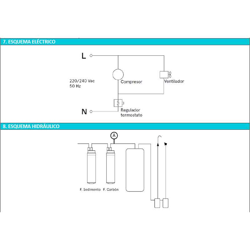 - Producción agua fría: 20 l/h.