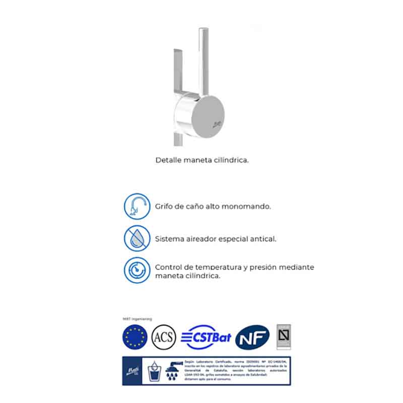 - Certificado ISO EC-1468/04 (Sistema de Gestión de Calidad AENOR). Grifos sometidos a ensayos de salubridad.
