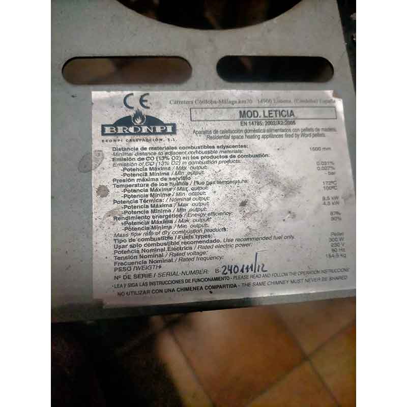 **IMPORTANTE, NOS INDIQUEN EL Nº DE SERIE DE LA ESTUFA. PARA LA INSERCIÓN DE LOS PARÁMETROS.