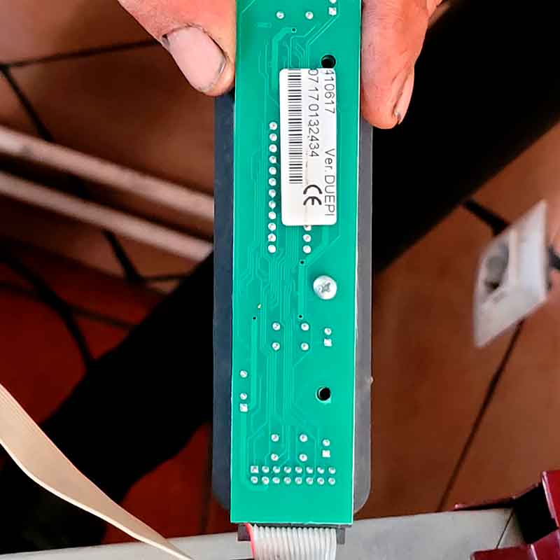 El teclado display LED DUEPI GROUP SBL conectado mediante cable plano a las tarjetas de control, permite programar los parámetros de funcionamiento y visualizar las funciones de la tarjeta electrónica de termorregulación a través de las 3 teclas.